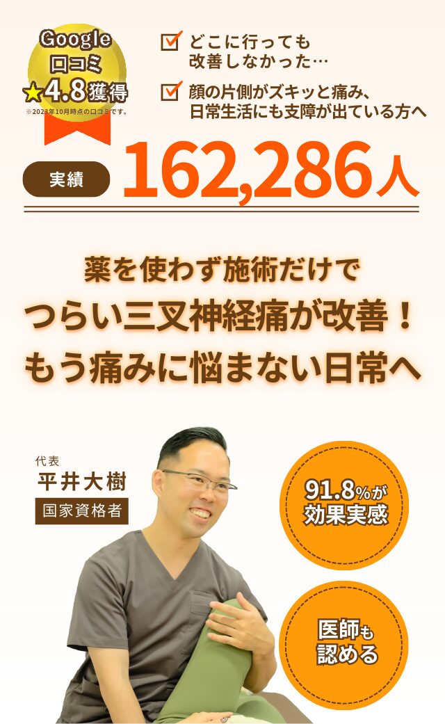 4年悩んだ三叉神経痛が10回の通院で落ち着きました!