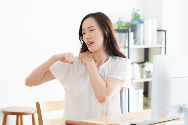 パソコン作業でマウスを操作したり、スマホを右手で持つ時間が長い方は、知らないうちに右肩の筋肉を酷使しています。